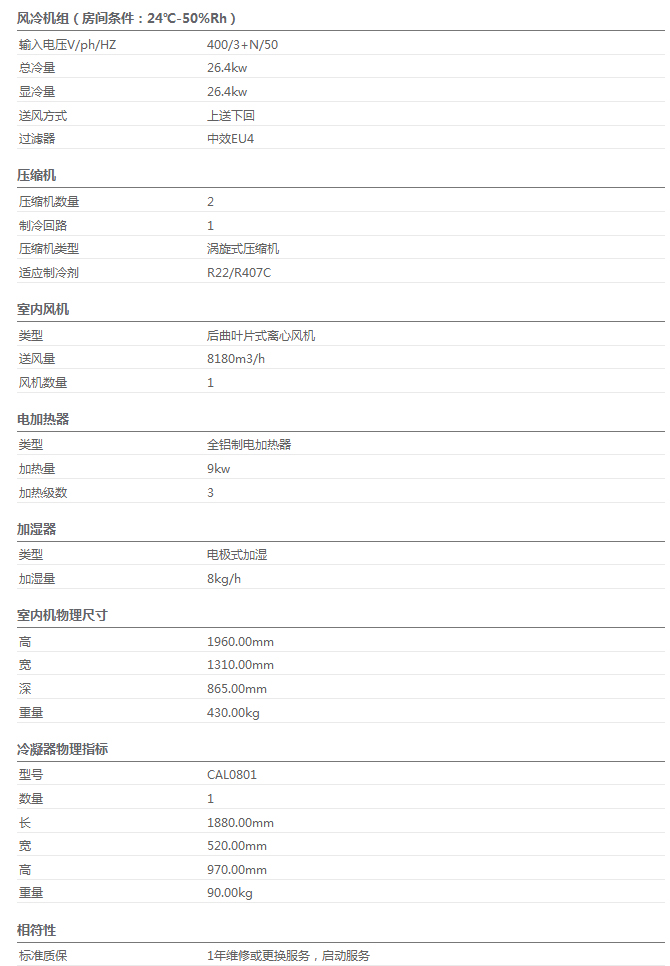 【施耐德TUAR0721】上送風/26KW制冷量/單系統-Leonardo系列